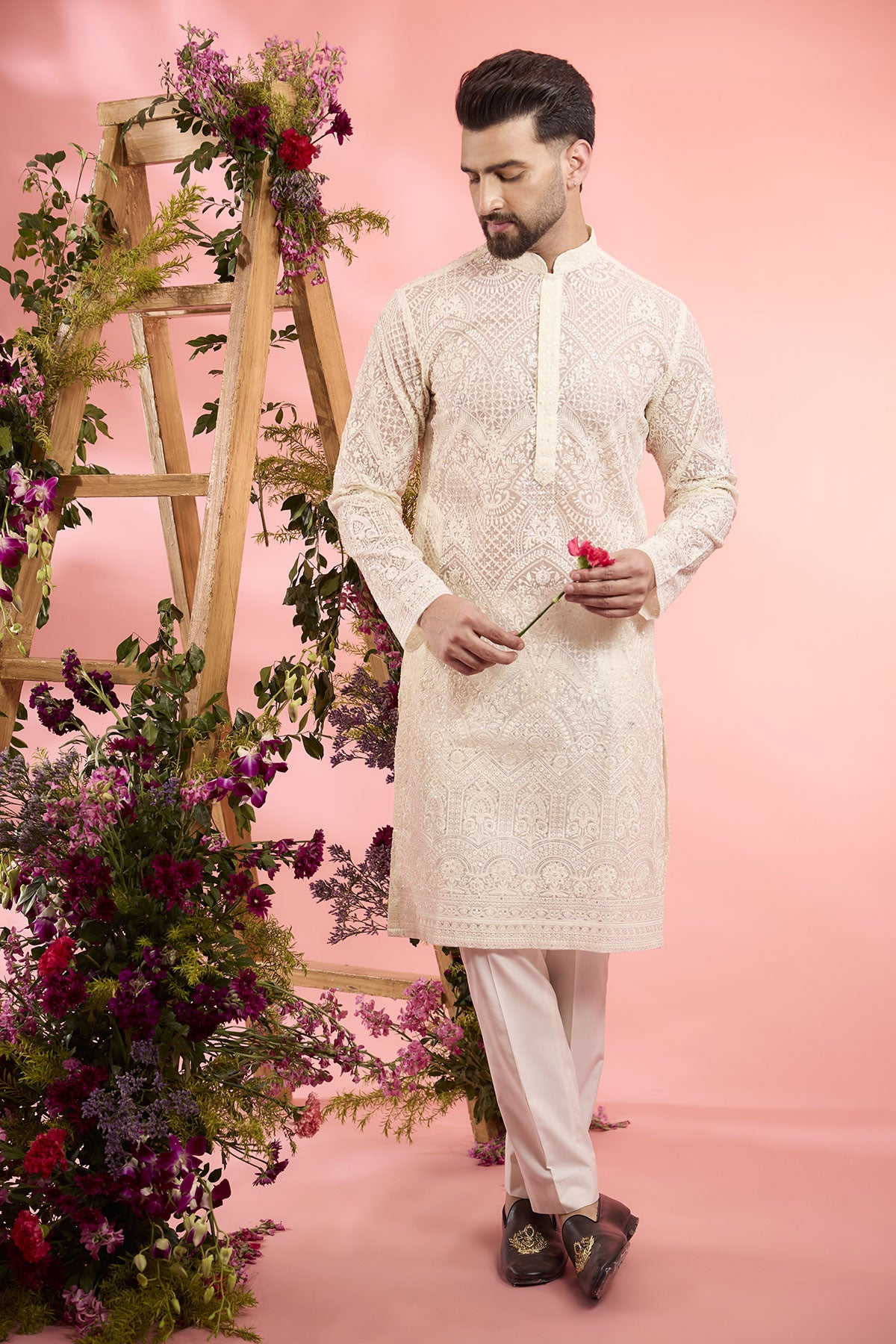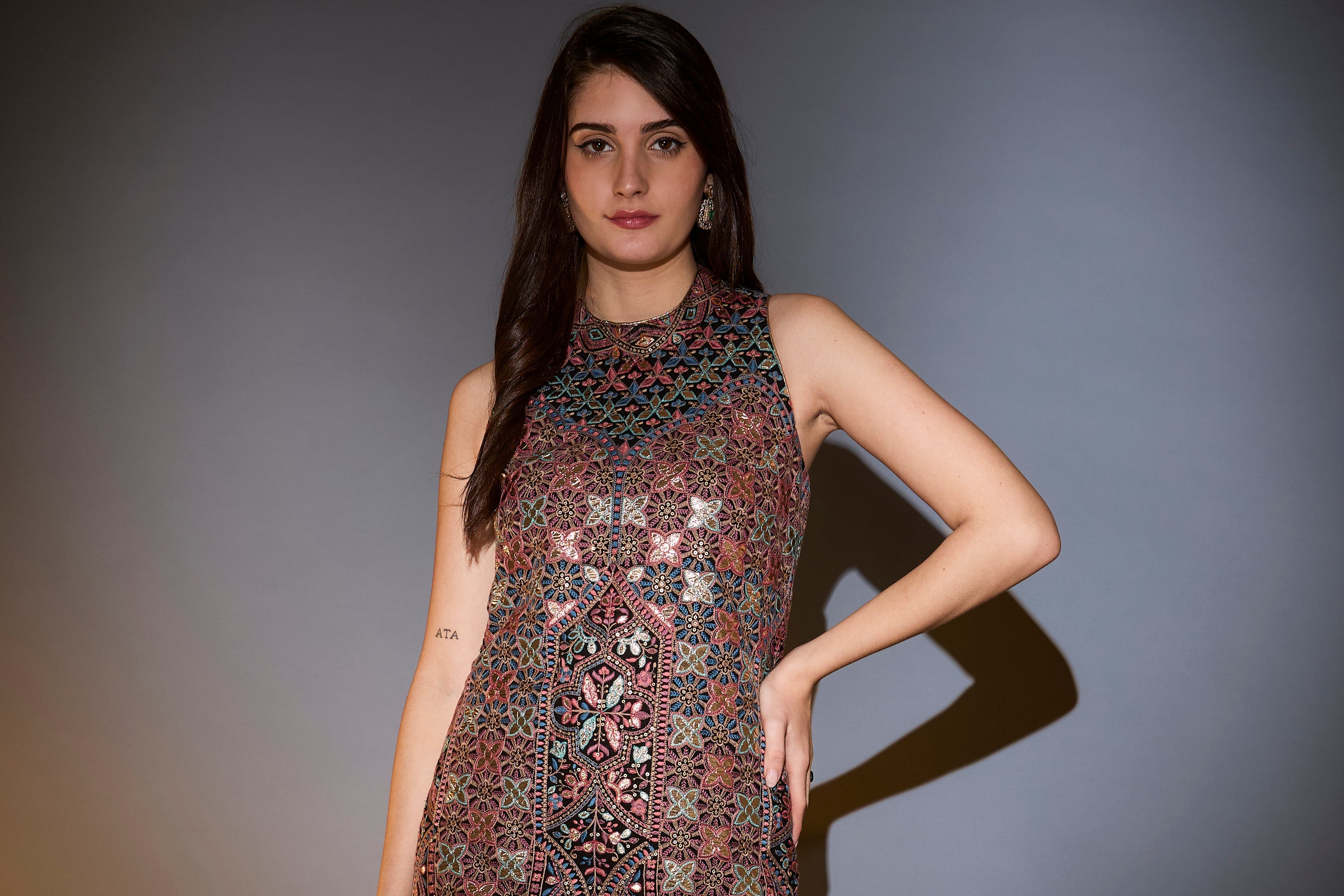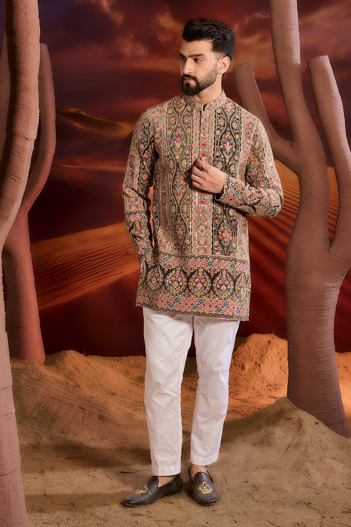 Mehndi Green Floral Short Chikankari Kurta With Multi Thread & Zari Work